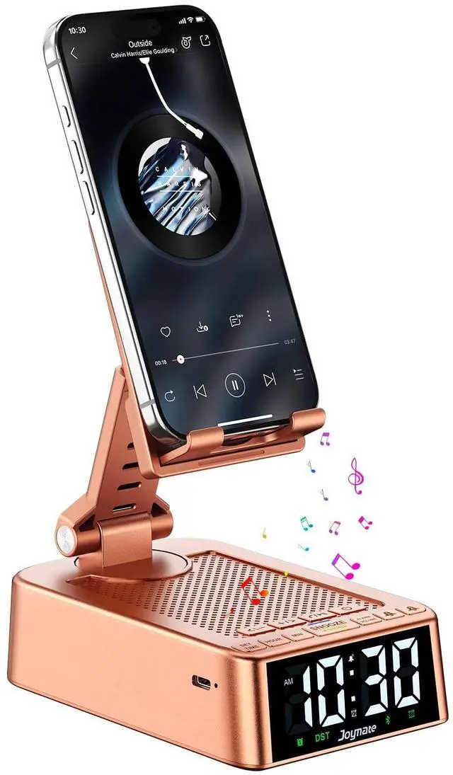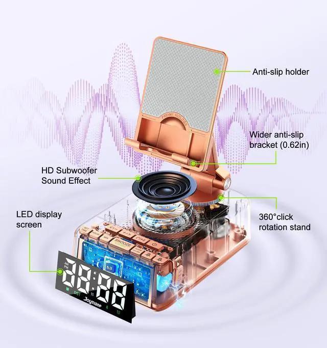 3 in 1 Bluetooth Speaker Phone Stand with Clock- Enhance your desk setup with a sleek accessory that not only holds phone, plays music but manages time efficiently. This phone holder supports a wide range of smartphones, tablets. A versatile gadget for wife/girlfriend, mother, and daughter, which definitely delight her. ^^ Bluetooth 5.3 and HD Stereo Subwoofer Speaker- We adopted Bluetooth 5.3 technology to ensure a stable and quick connection with your phone which far range up to 32.8 ft. Stereo and subwoofer sound perform well with clear highs and bass with less distortion, well immerse yourself in the plot or music.