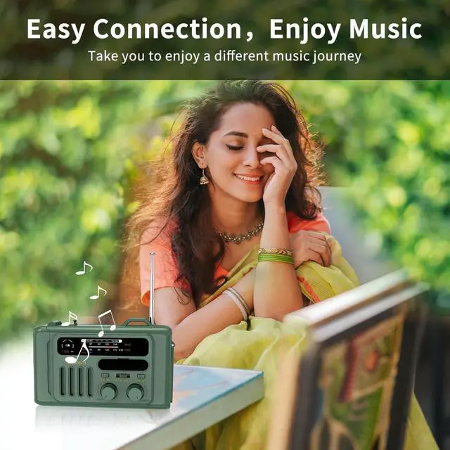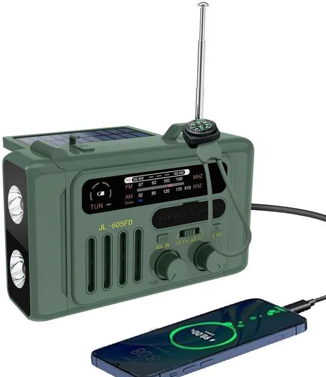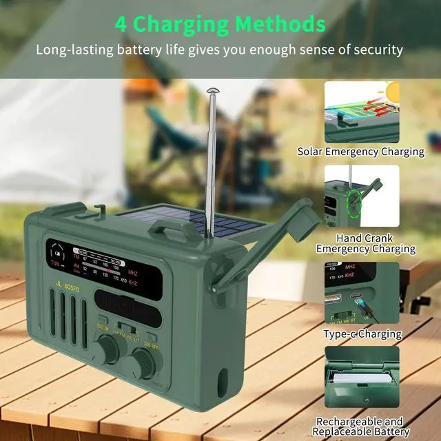 Solar Hand Crank Emergency Radio,NOAA/AM/FM with LED Flashlight & Reading Lamp,USB Type-C/Solar/Hand Crank Charging,Bluetooth Speaker,SOS Alarm&Compass for Camping Indoor Outdoor Emergencies (Green)