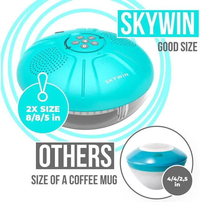 ^^ [True Water Protection for Worry Free Use] These IPX7 rated water resistant floating speakers for pool safely handle splashes and full submersion, featuring a practical drain design that helps sound clarity return quickly after heavy water contact, making them a dependable option for fun and functional pool gifts ^^ [ Extended Playtime for All Day Pool Enjoyment] This floating bluetooth speaker delivers approximately 4 to 5 hours of continuous music, supporting relaxed daytime lounging, pool parties, or hot tub sessions, making it a fun and practical choice among cool stuff for hot tub setups ^^ [Simple Controls with Hands Free Convenience] Top mounted touch buttons on the floating pool speaker with lights allow easy volume adjustment, track skipping, and call answering directly from the water, keeping your phone safely away from splashes while fitting seamlessly among pool accessories for inground pools.