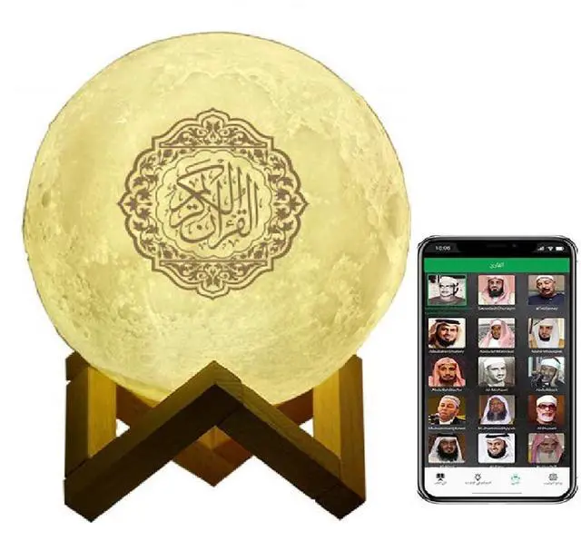 APP Quran SpeakerImprotant Notice: A new APP have beed activated at this moment, just search Koran Player in the app store or scan the new QR code as picture to download the support app to play the quran surah. Lighting and Learning Complete Quran SpeakerBluetooth speaker designed specifically for Muslims, with a built-in 8GB TF card, by the famous imam (supported by 16 famous reciters) and 16 different languages translation. Playing the Quran word by word, and easy to learn the Quran by this way. This portable Quran speaker is not just a simple Bluetooth speaker/wireless music player/APP CONTROL/hands-free speaker phone/bedside lamp, it is a touch control color-changing lamp (Touch the top Metal point to change) APP interface is controlled graphically. You can directly scan the QR code on the outer packaging or the manual to connect; (You can also search for'quran speaker' in Google Play to download the application, open the application, and click "Bluetooth Mode" to successfully search and match the Bluetooth connection, And set the latitude and longitude after setting). Connect and click "Mode"You can download Bluetooth Islamic music and play it via the. Support the entire chapter of the scripture, or play the entire page.