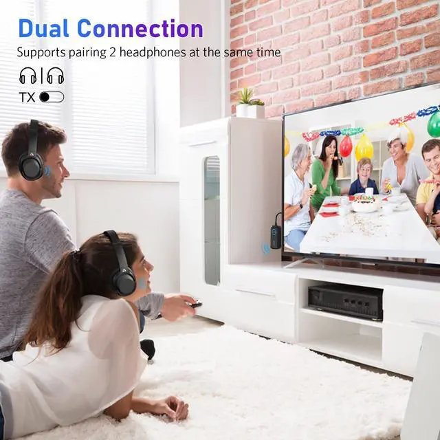 Note: The aptX modes of B06T2 requires devices also support. ^^ Hassle-Free Pairing with One-Button ResetYMOO B06T2 Bluetooth Adapter designed with RESET Button, long press for 2 seconds to reset pairing mode and clear all the pairing history. This solves over 90% of common connection issues and ensures youre always in controlno more accidental connections to forgotten devices. With a stable transmission range of up to 60ft (18 meters), its perfect for daily indoor use. ^^ Dual Link & Ultra-Portable DesignEnjoy music with a friendthe YMOO B06T2 supports simultaneous pairing with two wireless headphones. The built-in battery charges fully in just 1.5 hours and provides up to 12 hours of use in RX mode or 13 hours in TX mode. Compact and lightweight, its the ideal travel companion for wireless audio on the go.