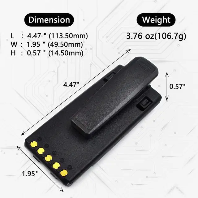 Reliable Power Solution for Icom RadiosUpgrade your Icom radios with this high-quality 7.4V 2000mAh replacement battery. Engineered for compatibility, this battery is the ideal replacement for BP-283 and BP-284 models, delivering consistent performance for professional and personal use. Advanced Lithium-Ion TechnologyWith a capacity of 2000mAh, this battery ensures extended runtime and reliable power output. Its compact size ( 114.32 x 51.32 x 22.08 mm) and lightweight design (260g) make it easy to install and carry, ensuring you stay connected during long hours of operation. Compatible ModelsThis replacement battery is compatible with the following