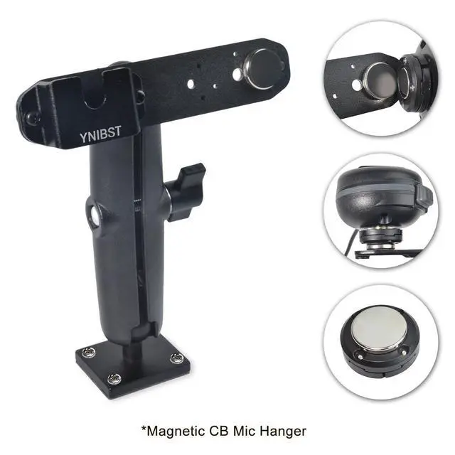 Multi-device holderThe multifunctional holder is designed to not only hold your handheld radio, remote speaker microphone with its belt clip. It also allows for the mounting of radio or microphone with a round knob on the back such as your CB mic, mobile radio microphone. ^^ Easy to useIts great for mounting your radio or microphone for quick and secure access where you need it. And the magnetic mic hanger helps to guide your microphone into place and release the mic quickly, helping keep your eyes on the road while in communication. ^^ Drill mount baseThis walkie talkie holder features a drill mount base with pre-drilled holes, which is great for mounting into a wall, or drilling down to a table, console and dashboard.