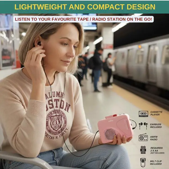 This cassette tape player is designed for anyone who wants to enjoy classic mixtapes, old recordings, or radio stations with reliable analog sound. It combines a cassette tape player, tape voice recorder, and radios portable am fm into one compact device. Play your favorite cassette tapes through the built-in speaker or the included wired earbuds, and experience warm audio playback similar to a traditional walkman cassette player. The player is easy to use with simple buttons for play, stop, rewind, fast forward, and record. The automatic stop system helps protect tapes and prevents unnecessary wear.
