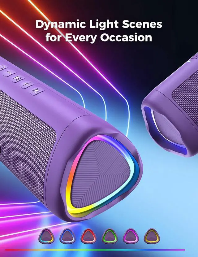 The multicolor lights on the speaker can also be turned off with a simple button press to save the battery and adapt to your needs. Keep in mind that the actual playtime can vary depending on volume level, audio content, and usage ^^ [Vibrant Light Effects] Bring a new level of excitement to your party with the dynamic multi-color light show that syncs to the beat of the music, you can easily customize the light effects to suit your preference by simply pressing the Light button. Make any gathering more memorable with these visually stunning light effects that will elevate the atmosphere ^^ [Everything You Need] The package includes 1 waterproof Bluetooth speaker (Item Dimensions D x W x
