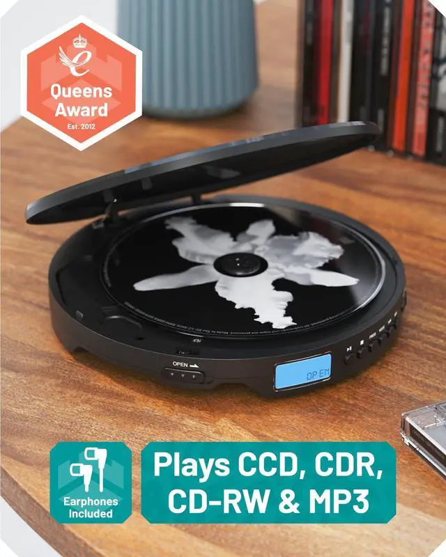^^,: Our portable CD player, offers an advanced audio experience with Bass Boost & high-quality earphones, and an in-line remote. Enjoy uninterrupted playback with the hold lock function and a backlit LCD display.
