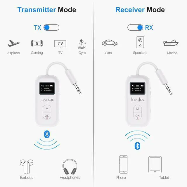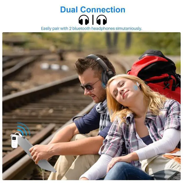 ^^ Up to 25 hours of Playback Time Get the most out of your entertainment with up to 25 hours of battery life, thanks to the long-lasting power of this wireless audio adapter. ^^ Convenient Built-In Screen for Easy Control Manage your audio settings on the go with the built-in screen of this Bluetooth adapter, making it easy to pair devices and monitor battery life. ^^ Extra Notes To protect the battery life of the product, the transmitter will automatically shut down if it is not connected to a Bluetooth device or if there is no audio stream for 5 minutes.