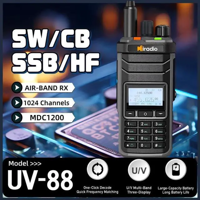 1. The Y23UV-88 is dust-proof, crush-resistant, and made with eco-friendly materials, ensuring it withstands tough environments while being environmentally conscious. With support for 1024 channels, it offers exceptional versatility and performanc ^^ 2. Simplify your setup with 1-second matching eliminating the need for cumbersome cable programming. The Y23UV-88s quick decoding ensures effortless and seamless communication ^^ 3. Equipped with Type-C quick charging the Y23UV-88 offers multiple charging methods via USB, keeping your device powered up with efficiency and convenience anytime, anywhere ^^ 4. In addition to supporting full-band AM FM USB LSB CW CB LW MW SW SSB and Air-Band RX the device features a port for connecting a shortwave antenna, significantly enhancing signal reception.