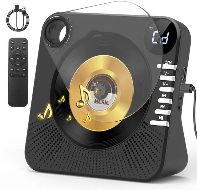 Player with Remote Control: With desktop vertical design, this CD player features a transparent protective cover to keep your CDs from dust. Equipped with a remote control, it is convenient for you to control the CD player even though you are not around it. You can also listen to the music via USB or AUX mode. The repeat function makes the songs/sections repeat under your settings.