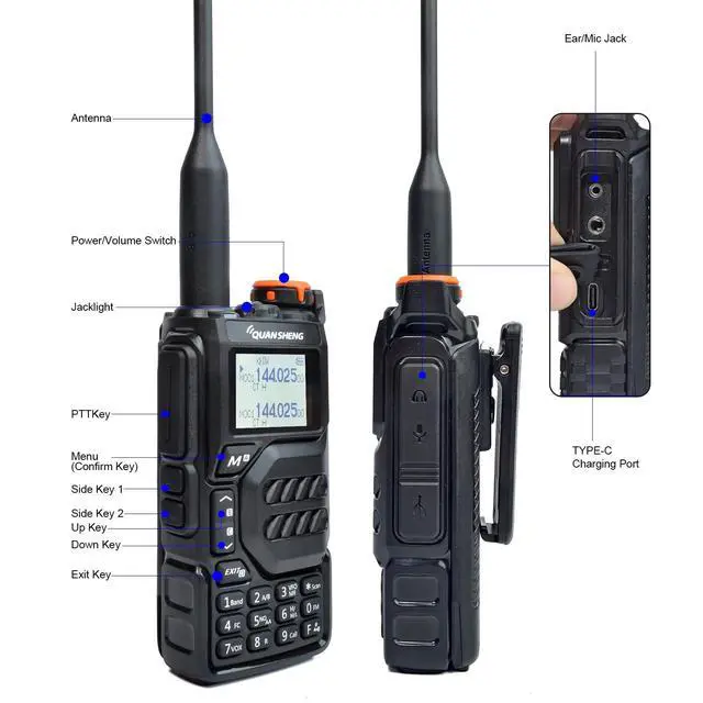 420~450MHz/VHF: 144~148MHz ^^ Main FeaturesEmergency weather channel receiving; AM/FM aviation band receiving; cross-band intercom; channel scan and add; FM radio; DTMF; fast copy one channel; Type-C and charge-base charging etc. ^^