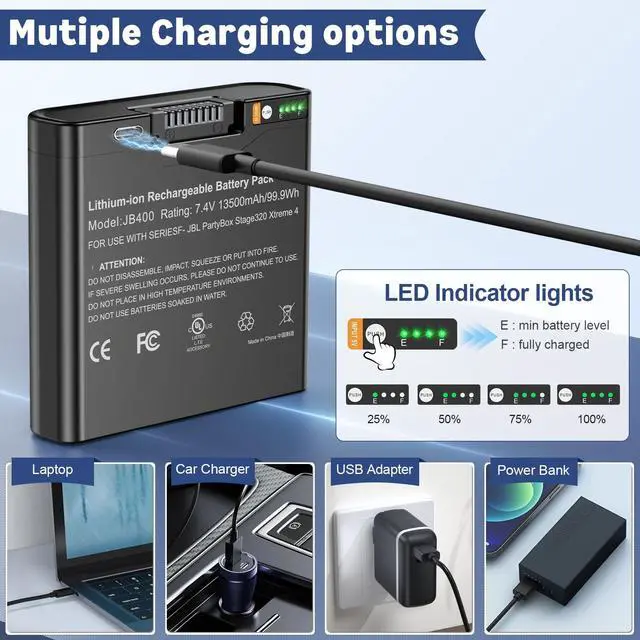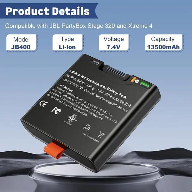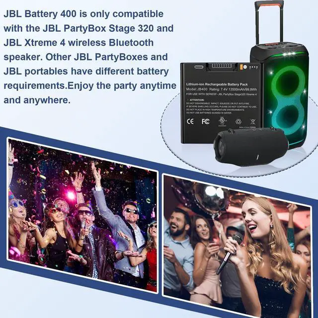 Compatibility: This Backup Battery is specifically designed for the PartyBox Stage 320 and Xtreme 4 wireless Bluetooth speakers, ensuring a perfect fit for these models.