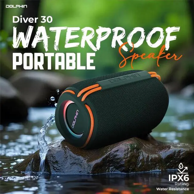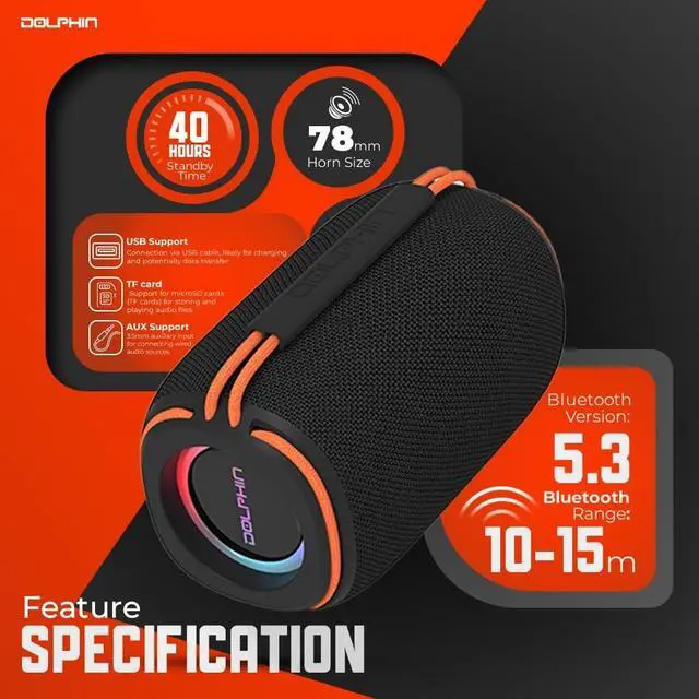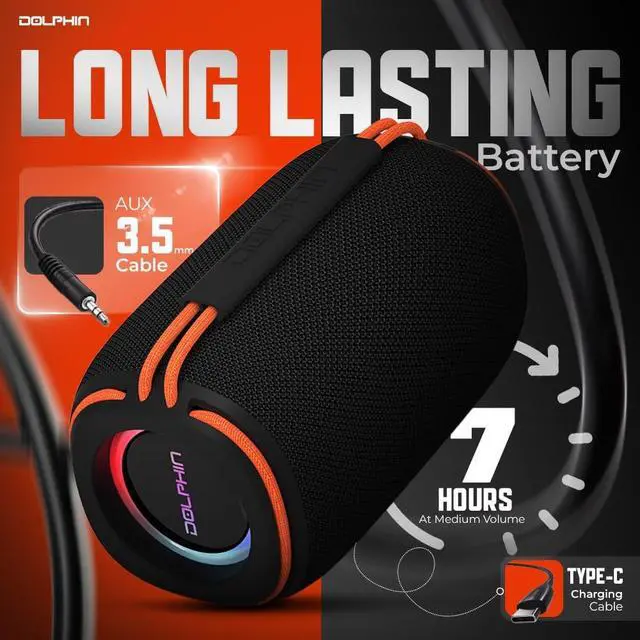 Frequency response: 40 Hz to 18 kHz ^^ Bluetooth v 5.3 with range of 32 ft. up to 49 ft.; WaveSync TWS technology lets you pair a send DR30 (sold separately) for stereo playback ^^ Flashing side LED lights with dedicated switch ^^ Single 3-in. full-range driver ^^ Waterproof rated (IPX6) for fun in wet environments like by the pool or at the beach; flexible elastic carry handle ^^ Playback from Bluetooth, USB and microSD (supports WAV and MP3 formats and up to 64 GB of memory), FM radio, and 3.5 -mm aux input ^^ USB-C charging for built-in Li-Ion battery; operating time up to 7 hours at medium volume and standby time of up to 40 hours ^^ Includes USB-C charge cable, aux cable, and user manual