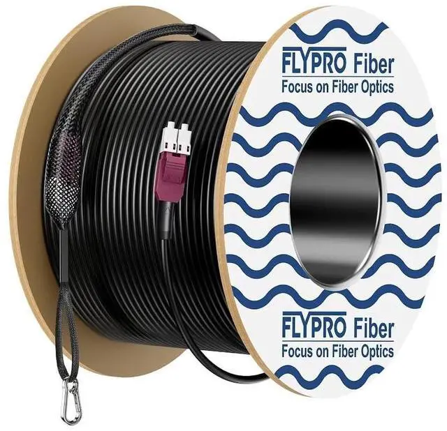Rugged Outdoor Durability---- The Industrial TPU Jacket features strong tensile strength, high abrasion resistance, waterproof, high and low-temperature resistance, UV-resistant, and bending resistance. Suitable for Various Harsh Installation Environments such as roads & snowfields & industrial fields & construction sites. ^^ Dual Armored Strength--- FLYPROFiber LC fiber jumper cable is Metal Steel Armor and stainless steel woven mesh Provides Dual Physical the inner core (fiberglass) from damage caused by pets and other external factors. ^^ Space-saving Uniboot Connectors--- FLYPROFiber LC duplex connector with Uniboot is encased in a common housing with one boot, terminating on a single twin-fiber round cable.