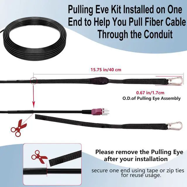 By using cable assemblies with LC Uniboot connectors, half of the space can be saved over traditional duplex cables. ^^ Pulling Eye Pre-Terminated OM4 Fiber cables--- with swivel pulling eye kit installed on one end to eliminate cable damage during installation to help you pull fiber cable through conduit. ^^ High-Speed Performance--- The OM4 LC to LC Industrial TPU outdoor fiber optic cable is specifically designed for high-speed data transmission, with the capability to support bandwidths of up to 100 Gbps. It offers versatile installation options, including overhead installation, direct burial in the ground, or routing through conduits.