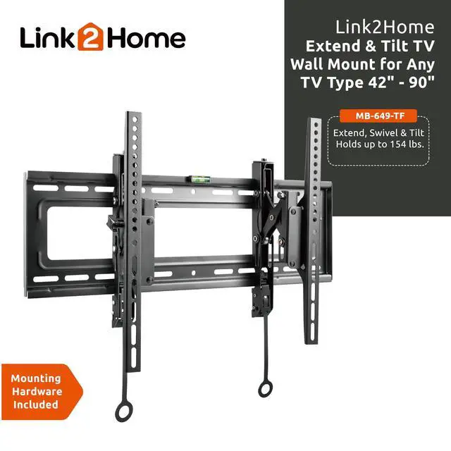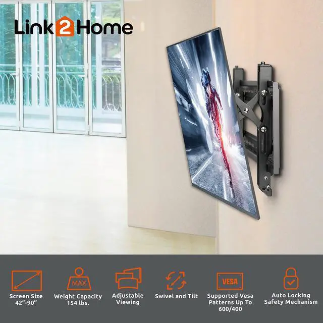 PREMIUM TV MOUNT: Universal TV Wall Mount for 42 to 90 screen sizes, up to 154 pounds. Designed to work with Flat and Curved Screen TVs & Monitors. Profile Extends 3.1 to 5.3, with open architecture for increased ventilation and easy access to wires.