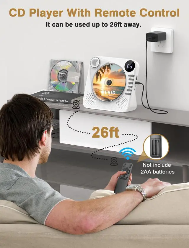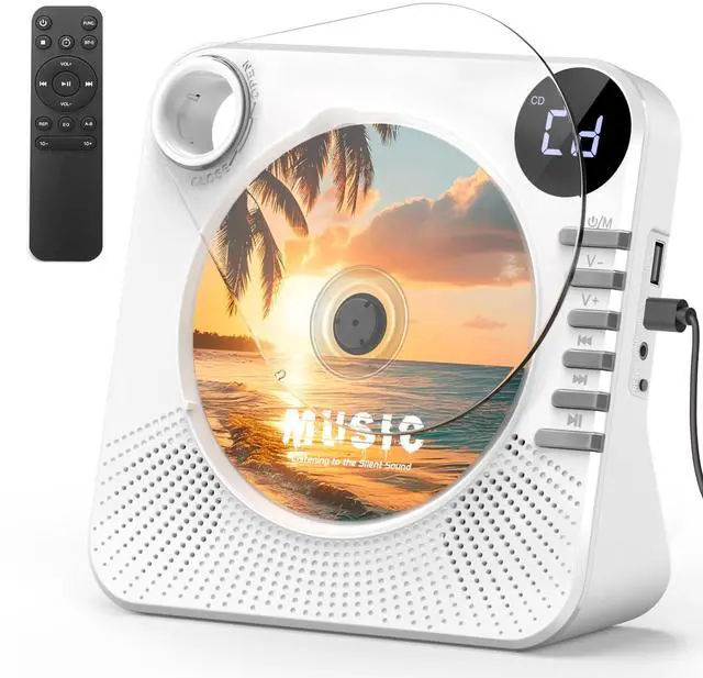 Player with Remote Control: With desktop vertical design, this CD player features a transparent protective cover to keep your CDs from dust. Equipped with a remote control, it is convenient for you to control the CD player even though you are not around it. You can also listen to the music via USB or AUX mode. The repeat function makes the songs/sections repeat under your settings.
