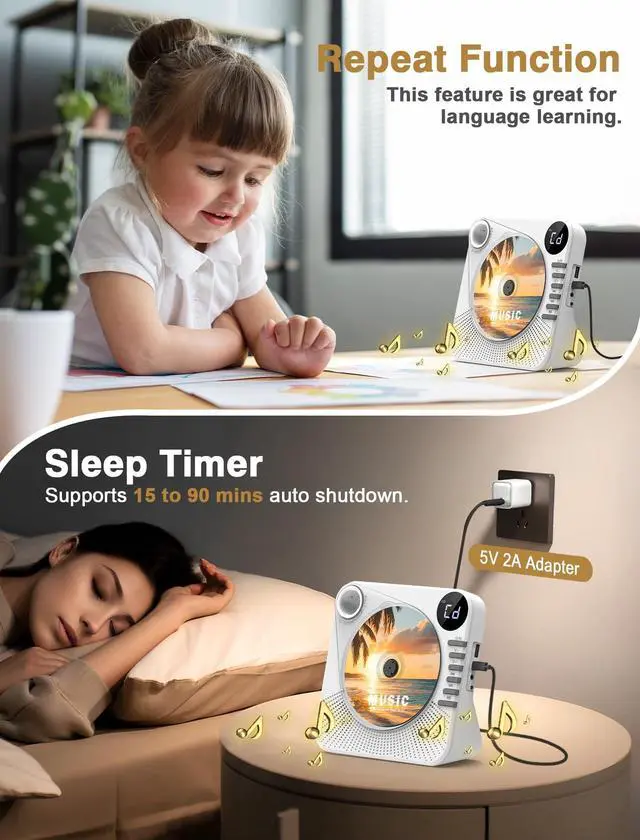 Sleep Timer & Customer Support: Fall asleep worry-free using the adjustable timer (15-90 min) that auto-shuts off playback. This remote CD player for home backed by a 12-month hassle-free warranty and lifetime customer support, its built to grow with your music collection.