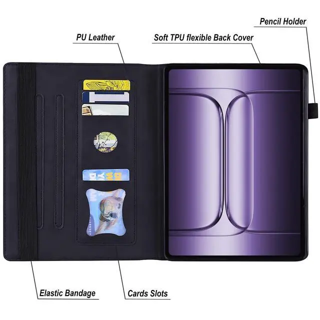 Exclusively designed for OnePlus Pad 2 Pro / OnePlus Pad 3 13.2 inch Released 2025. NOT compatible with any other devices. Please kindly check the model number before purchase. ^^ The document card pocket can easily store notes, cash, cards, two anti-skid strips provide two viewing angles for the stand position, which is convenient for reading, watching movies or typing. It is closed with an elastic band, which makes the tablet firmer when closed, and protects the screen and the cards inside from falling out. Built-in stretchy hand strap, increases handling security, while protecting against accidental dropping.