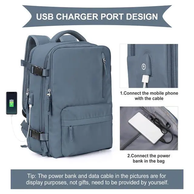 A separate shoe compartment can help you carry and keep your shoes better in your travel bag. ^^ USB Charging Port With built-in charging port allows you to charge your phone anytime, anywhere ^^ Anti-theft Multifunctional Backpack There is a zippered pocket on the back of the bag, which can hold valuables such as mobile phones and iPads, which is anti-theft and convenient.