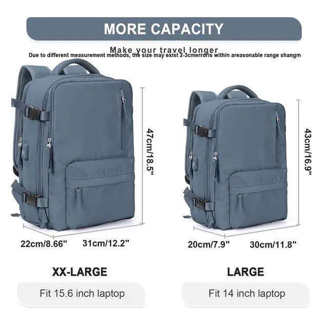 Great travel backpack for women This backpack is made of durable waterproof polyester, good air permeability and heat dissipation with two padded shoulder straps, offers lightweight carrying and strength reinforcement, relieve shoulder pressure, and maintain cool when wearing for a long time. And it's hard, solid, and doesn't fade. ^^ Separate Shoe Compartment Design & Wet Bag Main pocket x 2, laptop compartment x 2 (suitable for 14 "tablet and 15.6" laptop respectively), The wet bag is made of high density water resistant material can help you to separate dry items and wet items, if you have wet clothes or towel, you can put it in the wet bag.
