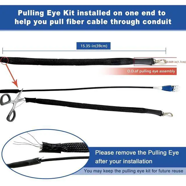 Connectors - Space-saving: LC duplex connector with uniboot is two LC connectors encased in a common housing with one boot, terminated on a single twin-fiber round cable. By using cable assemblies with LC Uniboot connectors, half of the space can be saved over traditional duplex cable. Uniboot single jacket patch cables make patch panel cable management becames considerably easier. Ideal for high-density cabling application. ^^ Come with Fiber Optic Cable Pulling Eye to help you pull fiber cable through conduit ^^