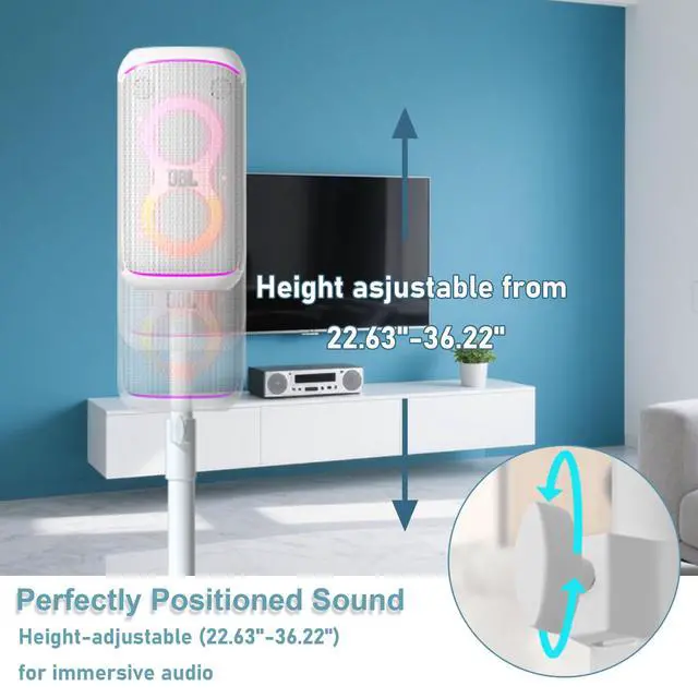 [Sleek White Design] This stylish white speaker stand is specifically designed for the J-BL Partybox 120/320, blending durability with a modern aesthetic to complement your party setup. ^^ [Heavy-Duty All-Metal Construction] Built from high-quality metal, this stand ensures rock-solid stability and long-lasting performance, whether indoors or outdoors. ^^ [Quick & Easy Assembly] Includes all necessary hardware and clear instructionsset up your J-BL Partybox 120/320 in minutes for instant elevated sound. ^^ [Adjustable Height (Up to 36.22" )] Customize the stands height to position your speaker at ear level, enhancing stereo effects and delivering an immersive listening experience.