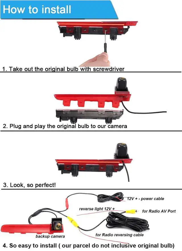 Dear customer, Please must check the camera size and appearance before place a order, see if can fit your car brake light lamp place size and appearance! Because the same car model in different countries may have some difference, please check the camera size and compare the installation of your car carefully to avoid mistake. This product could fit for all below models as expected: replacement for VW T5 Multivan T6 Caravelle Heckklappe Hochdach Transporter Business MPV SUV-