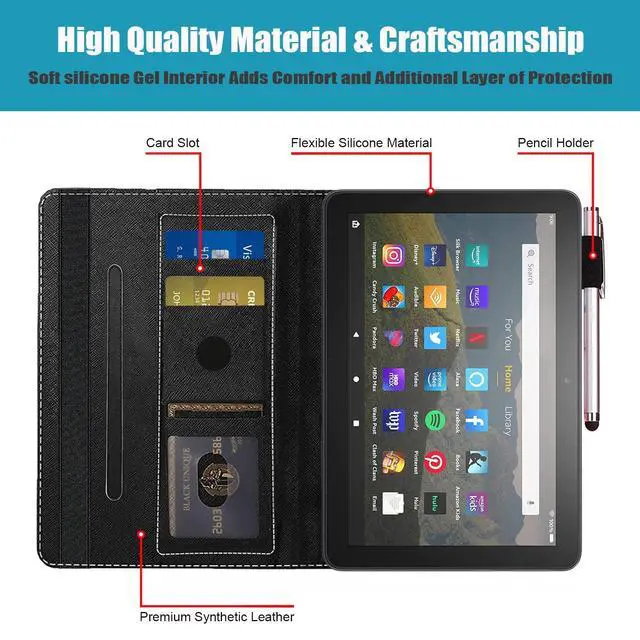 This fire HD 8 plus (12th/10th gen) tablet case sports a simple and classy design made from synthetic leather, Unique pattern design and durable tablet computer case, shockproof, scratch-resistant, and drop-resistant. Choose TBXOSTN brand to add a safe protect and exquisite appearance to your device.