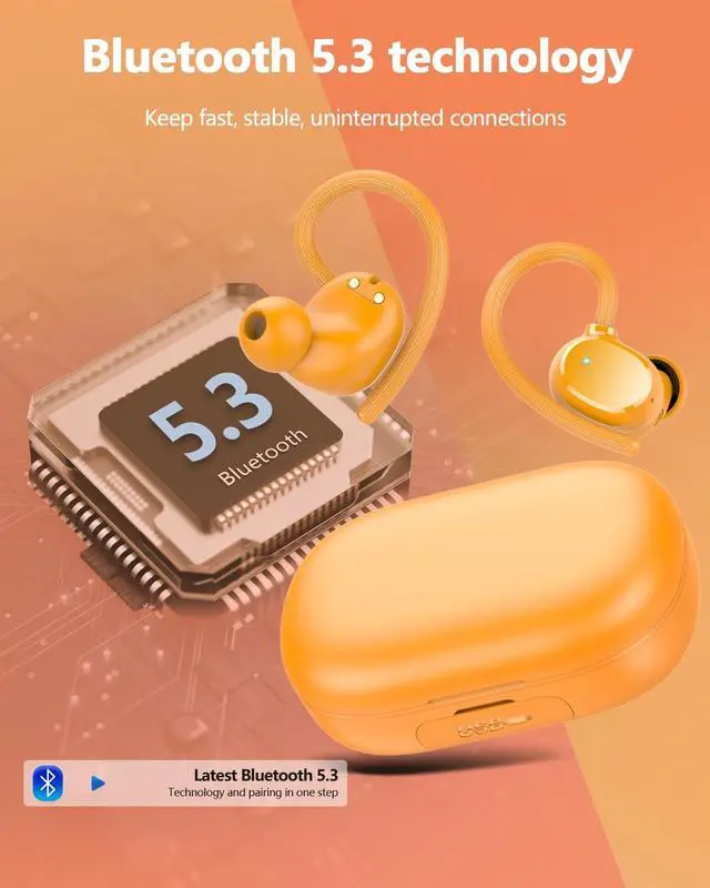 CHIP AND ONE STEP PAIRING: Wireless headphones are powered by 2026 upgraded Bluetooth 5.3 chip technology, which improves audio data transfer speed by 85%, uninterrupted and stable transmission, and lower energy consumption (up to 15 meters), making it easy to control your music and phone calls in the home, office, or wherever you are; After initial connection, the device will automatically pair with ear buds, simply remove the bluetooth earbuds from the charging case and automatically connect to your phone ^^