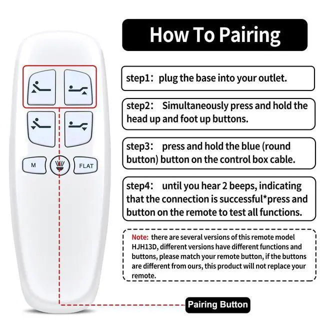 RETROSUN HJH13D Replacement Remote Control is only Compatible with Richmat Milemont and Lucid Adjustable Bed. not universal bed remote, can not replace the other brand of adjustable beds. The remote used 2 AAA batteries, which need to be purchased separately. If any questions on your remote please contact us anytime.