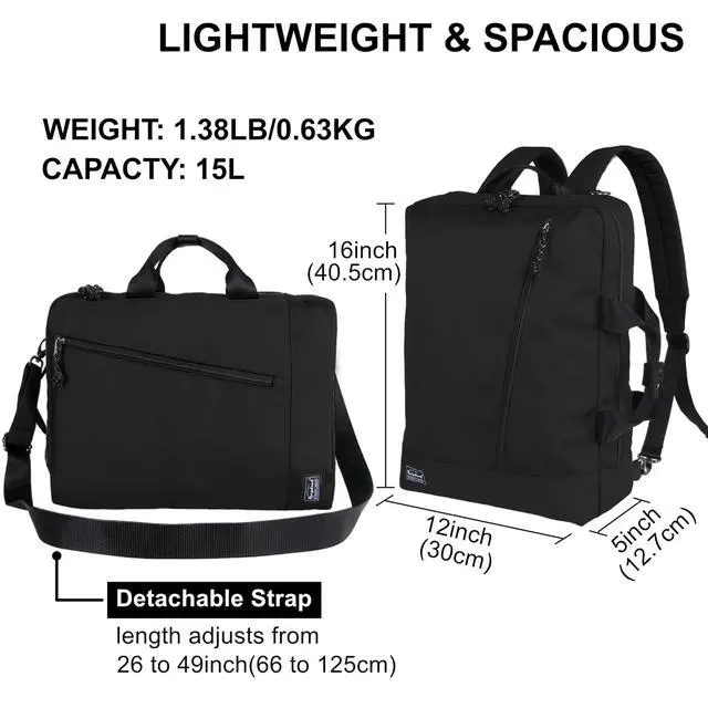 Hidden Straps: This convertible brief backpack combines a sleek and casual style, suitable for formal suits and casual wear, offering the flexibility to switch between backpack, shoulder bag, crossbody, or briefcase styles, adapting to your everyday life with ease ^^ Durable Water-Resistant Polyester Construction in a