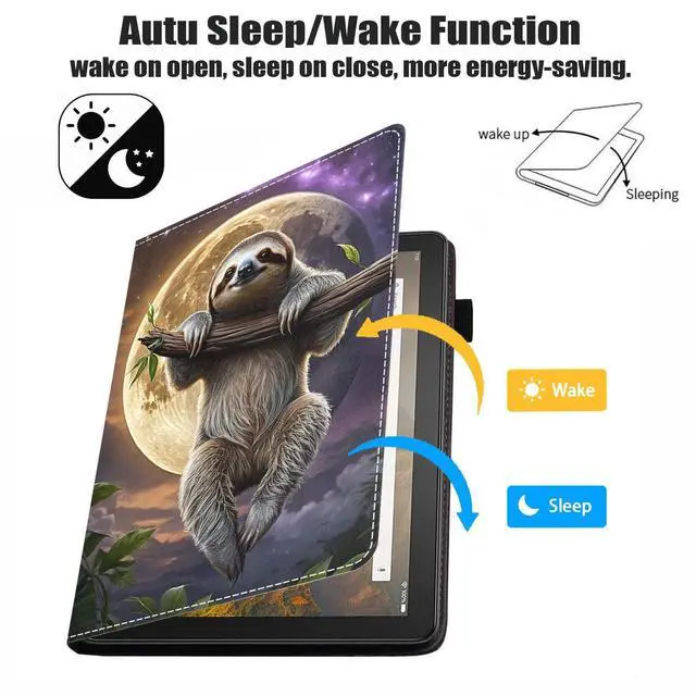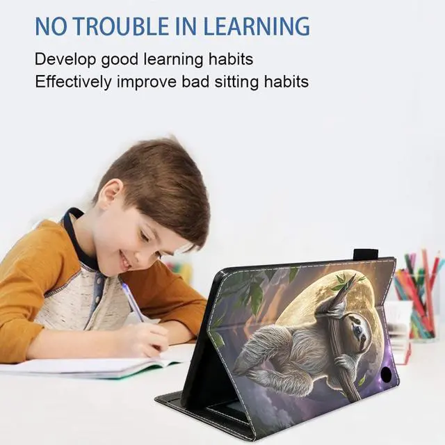 JDHJFBFJNP Case for Fire HD 8/HD 8 Plus Tablet (12th/10th Generation, 2024/2022/2020 Release), PU Leather Stand Flip Cover with Card Slot & Pencil Holdere, Cute Sloth