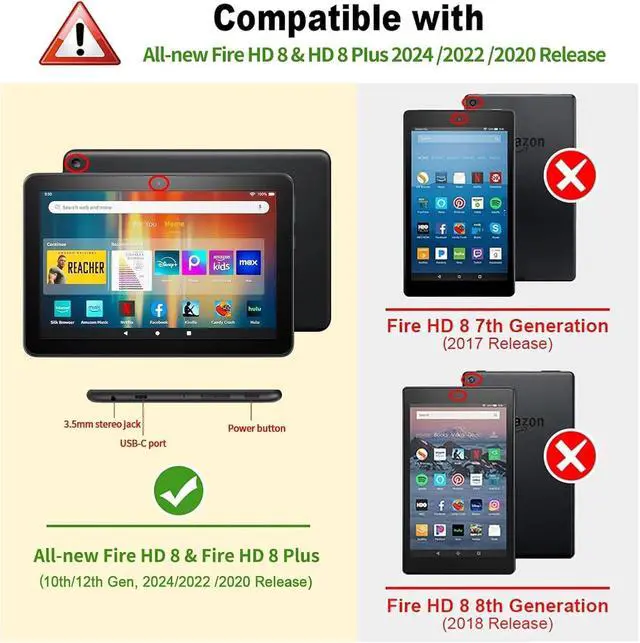 Please Note: Specifically designed for All-New Fire HD 8 / Fire HD 8 Plus Tablet (12th/10th Generation, 2024/2022/2020 Release). Not Compatible with kindle fire HD 8 tablet (8th/7th/6th Generation, 2018/2017/2016 Release) or any other tablet.