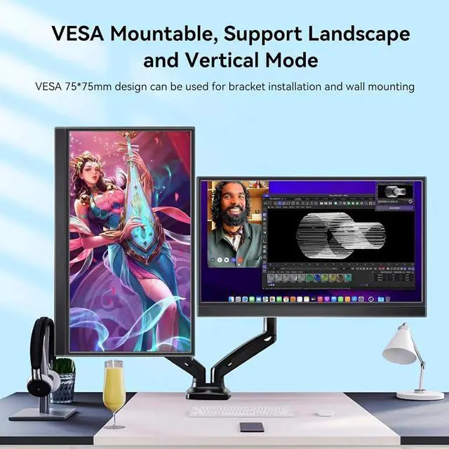 ^^ Versatile Connectivity: The portable monitor for laptop includes 2 Type-C ports, a mini HDMI port, and a 3.5 mm audio jack allowing seamless connections to laptops, gaming consoles, and other devices.