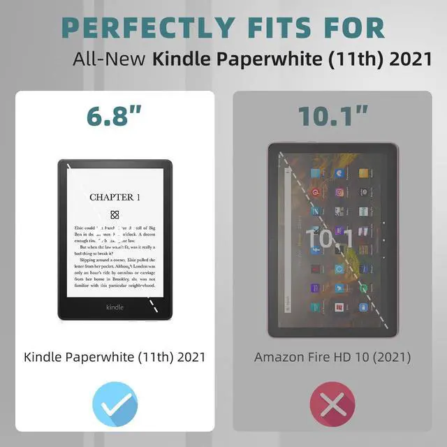 Compatible for Kindle Paperwhite 11th Generation 2021 CaseThis protective stand case specifically designed for Kindle Paperwhite 11th Generation 2021. Not applicable to other models ^^ Multiple Angles Viewing Folio Stand CaseIt has a stand function with multiple viewing angles, making it convenient for reading and watching videos ^^ Auto Sleep/WakeIt provides auto sleep/wake function by easily opening and closing the front cover. Simple operation saves energy and extends standby time ^^ Precise Cut-OutsAll cutouts perfectly match the features of your device. It is easy to connect the speaker and charging port. You can conveniently operate all buttons and the camera without removing the rotatable case from the tablet ^^ Shockproof ProtectionDouble-layer shockproof protection.