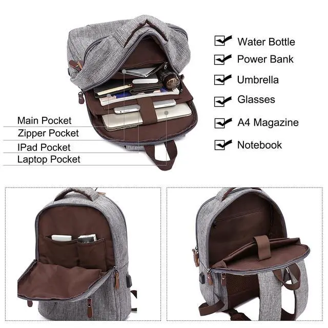 as well as a front pocket and two mesh side pockets. Our small walking backpack has a three-dimensional structure that is comfortable to use, and the adjustable padded shoulder straps can be adjusted to fit your needs. ^^ Built-In USB Charging PortThis innovative laptop rucksack features an external USB charging port. Simply connect your own power bank (not included) to the integrated cable inside the bag, and you can conveniently charge your smartphone or other devices on the go. A internal pocket keeps your power bank secure and organised, eliminating tangled cables and ensuring your essential gadgets never run out of battery during your commute, travels, or workday.
