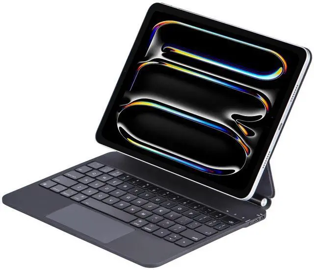 This Magic Keyboard uses strong magnets to securely attach your iPad and lets you easily adjust the floating stand to the perfect angle for typing or browsing. It turns your iPad into a fully functional laptop in seconds! The slim, lightweight design fits perfectly with iPad Pro 11 (M5 / M4) ideal for work, study, or travel. ^^ Trackpad with