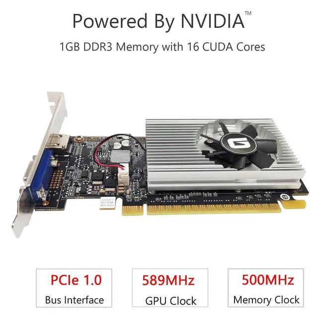 Powered by NVIDIA GeForce GT 210, 40nm chipset process with 589MHz core frequency ^^ Integrated with 1024MB DDR3 memory and 64-bit bus width ^^ Features double screen output by HDMI / VGA. HDMI Max Resolution-2560x1600, VGA Max Resolution-2048x1536 ^^ Support DirectX 10.1, OpenGL 3.3 ^^ Original half height bracket matches with the low profile brackets make the Glorto GeForce GT 210 graphics card fit well with all PC tower, small form factor and HTPC (except micro form factor)