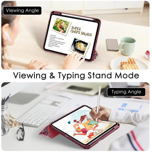 (Note: Apple Pencil is NOT included) ^^ [Designed for Auto Sleep/Wake] - Magnetic smart cover supports auto wake & sleep function. Magnet secures the iPad (A16) 11th/10th gen case closure, easy snap on and off, to save your time ^^ [Designed for Stable Stand] - You can easily prop up the ipad with dual standing positions for enjoy the most comfortable keyboard-typing and movie-viewing. Free your hands to deal other things