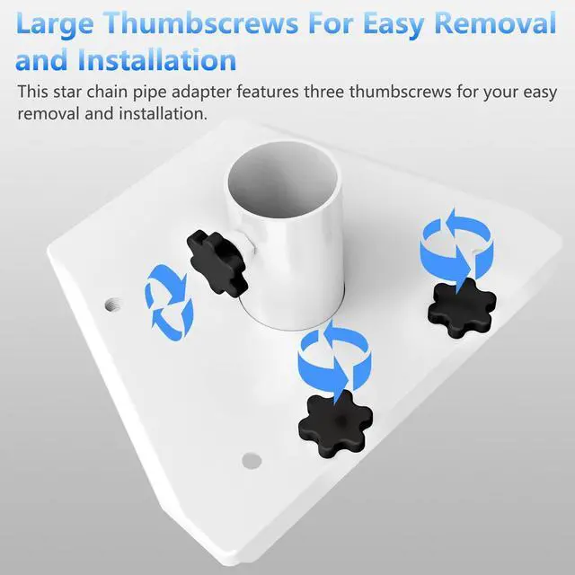 ^^ User Friendly Installation: With three finger screws, this pipe adapter requires no tools for installation. Simply tighten the knobs for easy disassembly and assembly.