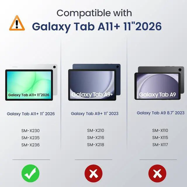 Compatibility: This case with keyboard is compatible with Samsung Galaxy Tab A11 Plus/A11+ 11 Inch 2026 Release, Model (SM-X230/X235/X236B). Please check the model name of your tablet before ordering ^^ 7-color