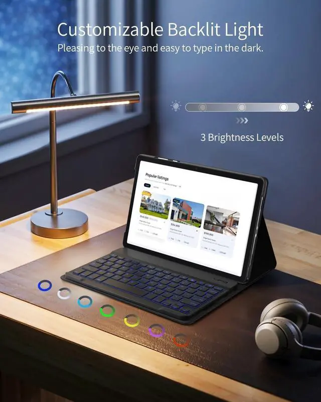 Backlight: The Galaxy Tab A11 Plus case with keyboard comes with power-saving mode. If not used for a long time, it will enter hibernation state. 3 levels of brightness and 7 vibrant colors make typing fun and easy, whether in the dark or bright environments ^^