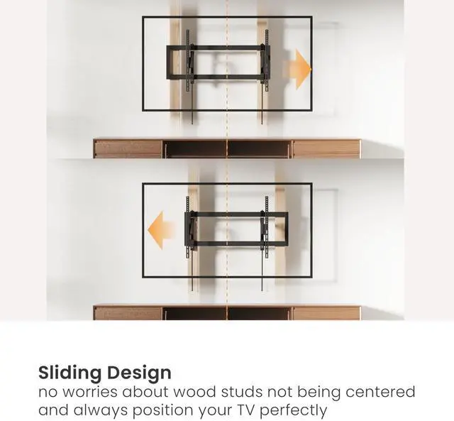 Lateral Shift Wall Plate: The wall mount has feature to allows TV to shift left and right for perfect placement with off-center studs to achieve perfect TV centering. It is designed with a wider wall plate that fits 16/18/24 Wood Studs ^^ Anti-Theft