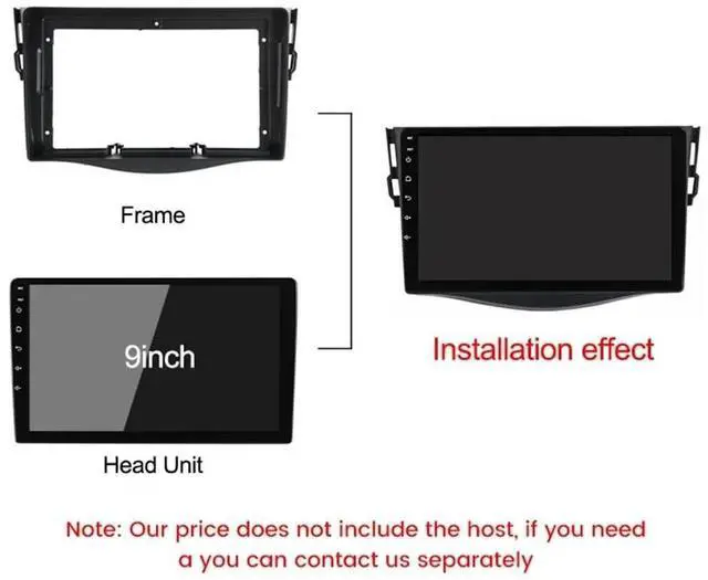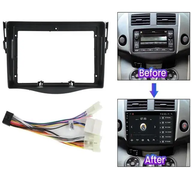Application: This 9 inch dash fascia panel trim fits TOYOTA RAV4 2006-2012 Car to install aftermarket stereo headunits. It is OEM designed to securely hold the car radio stereo in the dashboard.