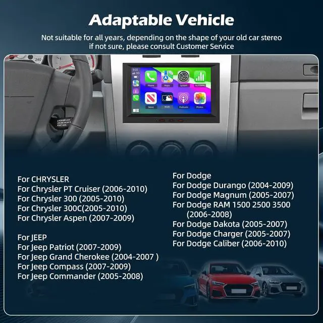 Models]: For Dodge Ram 1500 2500 3500 radio; For Jeep Compass Patriot 2007-2009; For Jeep Grand Cherokee 2004-2007; For Chrysler 300 2005-2010; For Dodge Caliber 2006-2010, etc. For more supported year models, please check the product detail page (If you have any questions about the product's compatibility, please send us a photo of your car's original dashboard) ^^ [Wireless