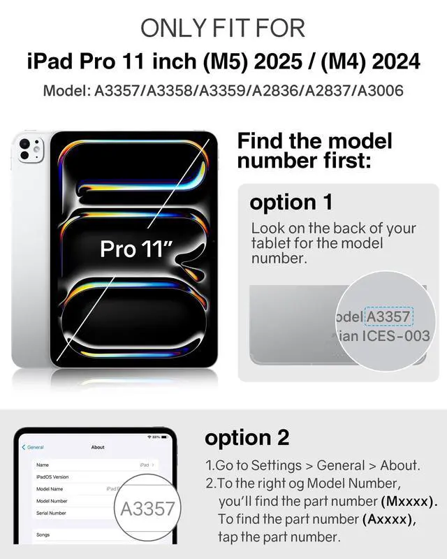 Compatibility: Designed for iPad Pro 11 inch (M5) 2025 (Model number: A3357, A3358, A3359) and iPad Pro 11 inch (M4) 2024 (Model