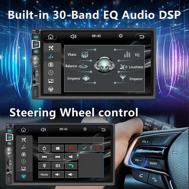 Wireless CarPlay & Android Auto&Mirror Link: Supporting wireless and USB data transfer, when you enter the car, your phone will effortlessly synchronize with the in-car radio and automatically connect to Carplay/android Auto, while Mirror Link also supports wireless and USB data transfer, seamlessly integrating your smartphone with your car. Mirror Link also supports wireless and USB data transfer, seamlessly integrating your smartphone with your car. ^^ Bluetooth 5.2 and 1024*600 HD