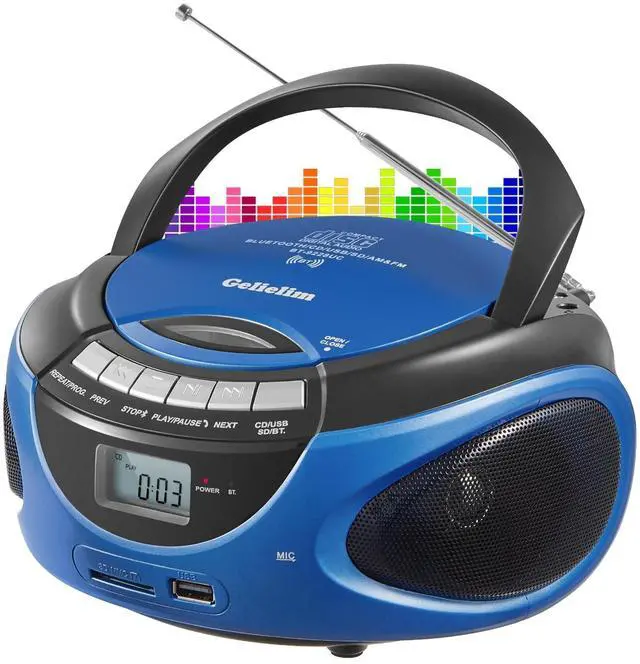 PRESENT] Size: 8* 7.5 * 4.3 in, Weight: 2.6 lb. This boombox CD player combines a CD player, AM/FM radio, and Bluetooth speaker, which is compact but multifunctional. We add rear knobs to change the radio channel and the volume which can take you back to the old days. A thoughtful present for elders, grandparents, and parents. Present ideas for birthdays, anniversaries, and Christmas. ^^ [Quality Assurance] Gelielim portable CD player boombox is made with premium material with a long life span. We provide 24/7 customer service. Also provide a comprehensive user manual, helping you to use it easily. If there are any questions, please contact Gelielim customer service team ^^ [Perfect Christmas Day Gifts] This cd boombox isnt just a portable cd playerits a nostalgic treasure loved by fathers, grandparents, and even kids. With its classic design and modern functionality, its the perfect gift to spark joy on Fathers Day, birthdays, Chritsmas or any special occasion. Share the warmth of music and memories with those you cherish most! ^^ Portable CD Player Boombox for Home with Bluetooth