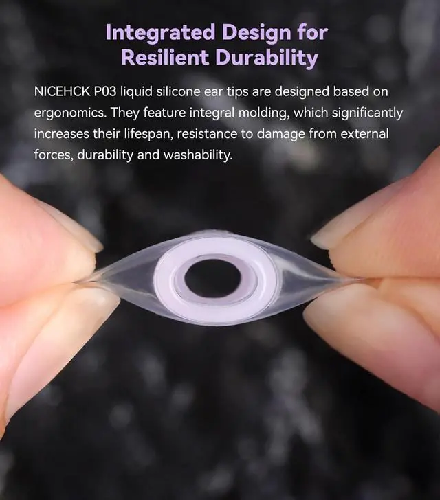 High-Purity Transparent Liquid SiliconeCrafted from baby-skin-like liquid silicone material, the P03 ear tips are safe, skin-friendly, and ultra-soft. Enjoy long listening sessions without discomfort thanks to the soft and elastic texture.