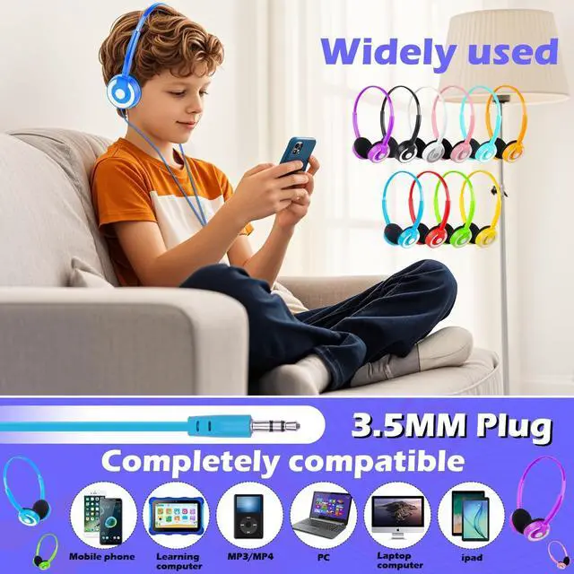 Kids Headphones in Bulk 20 Pack, Students Headphones in Multi Color ^^ Comfortable Children' s Headphones With soft ear cushions, comfortable to wear for daliy use. It's not a disposable headphone, coming with strong stereo sound, which can be used again and again ^^ School Headphones Wide Compartibility, Kids Headphones with 4.5 feet cable, 3.5 mm jack, compatible to with Tablets, PCs, Desktops, Laptops, Chromebooks and Fitness equipment, it's a great choice for class use and school testing ^^ Bulk Headphones for Classrooms, CNSZSLZ headphones for kids for school are packed by a carton box, each headphone sealed by individual bag ^^